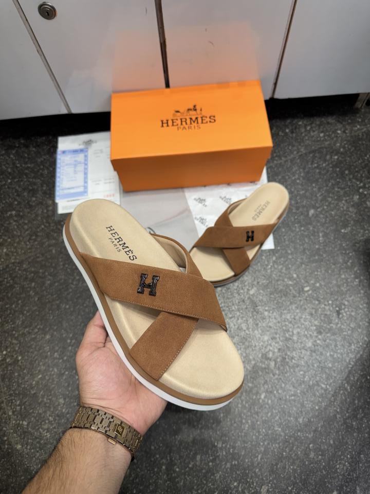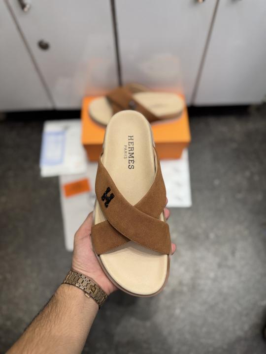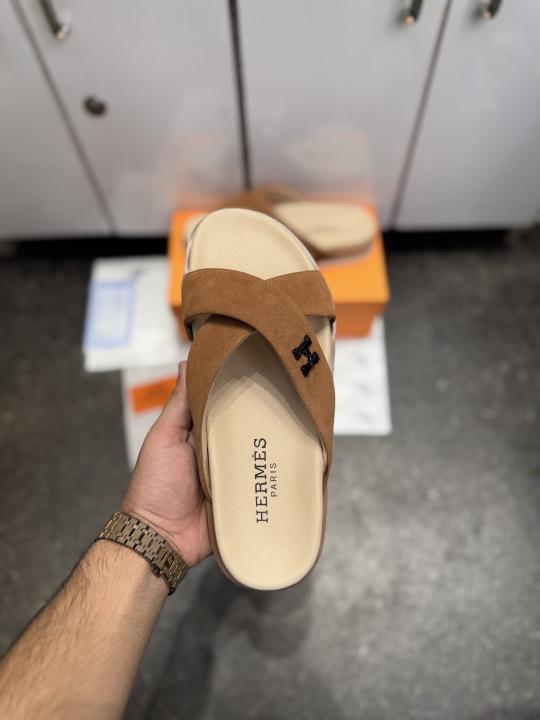 HERME.S INFRA CROSS ITALIAN SLIDE TAN SUEDE 022