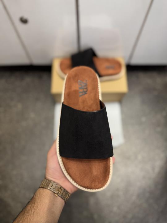 ZAR.A PREMIUM SUEDE SLIDE BLACK TAN 026