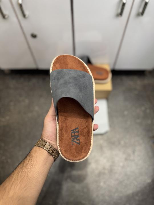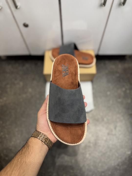 ZAR.A PREMIUM SUEDE SLIDE GREY TAN 025